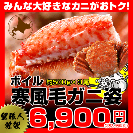 ボイル寒風毛ガニ姿約500g×3尾 価格: 6,900円 ▲きたいち厳選カニギフト商品内容●ボイル寒風毛ガニ姿約500g3尾※写真はイメージです。気温により外箱が変わる場合がございます。賞味期限冷凍保管で1カ月/冷蔵保管で2日生モノですのでなるべくお早めにお召し上がり下さい。※一度解凍した蟹は味や風味が落ちますので再冷凍はしないでください。注意事項※脚が折れたり外れたものもあります。ご了承ください。お召し上がり方 ▼下記参照 ※当商品に食べ方パンフレットが添付されております。 毛蟹は甲羅を下にして必ず自然解凍してください。お届け日ご注文より、6日後以降から一ヶ月迄のご指定日にお届けいたします。※天候・交通等の影響により多少お届けが遅れる事があります。 (更新日時:2010/12/16 11:15) Supported by 楽天ウェブサービス |